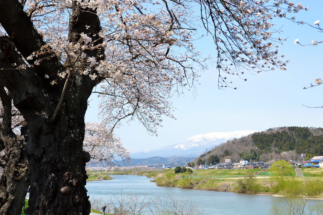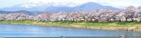 白石川堤「ひとめ千本桜」 マップ 大河原町内を流れる白石川堤には隣の柴田町まで全長約8kmにわたる桜並木が続き、一目千本桜と呼ばれている。約1200本の桜のトンネルのうち三分の一は樹齢90年を超えている。桜の種類はソメイヨシノ、シロヤマザクラ、ヤエザクラ、センダイヨシノなど。 右画像はクリックでパノラマ写真になります。 |