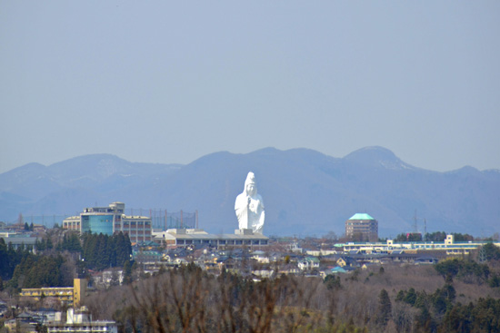 | 公園から見える 仙台大観音 地元の地元の事業者が建立したが、その後倒産し、現在は真言宗のお寺さん 中にはエレベーターもある | |||